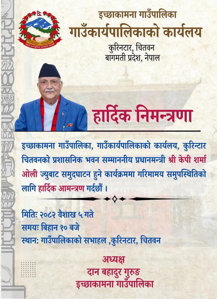 इच्छाकामना गाउँपालिकाको प्रमुख प्रशासकिय भवनको समुद्घाटन बारे सूचना