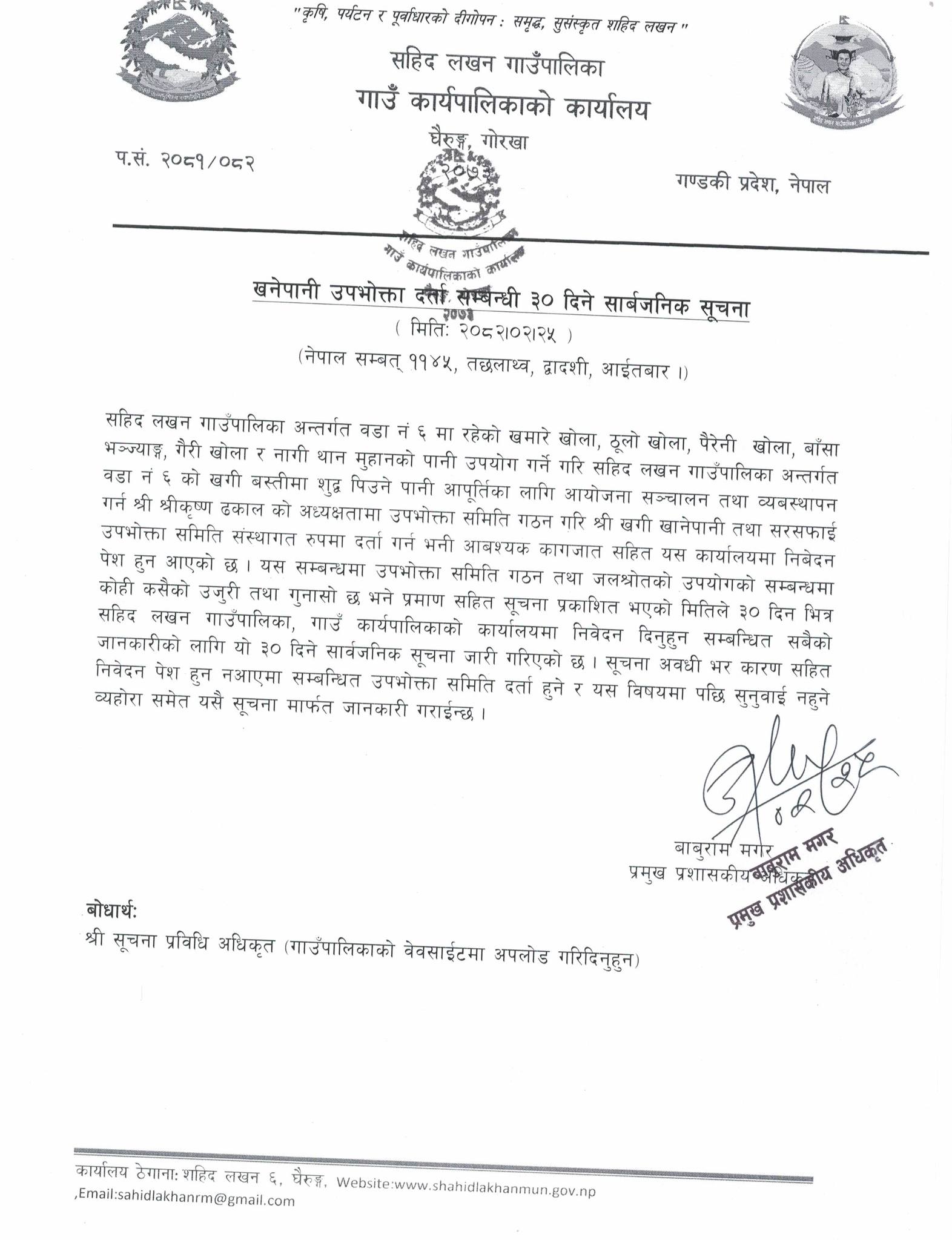 खानेपानी उपभोक्ता दर्ता सम्बन्धी सूचना